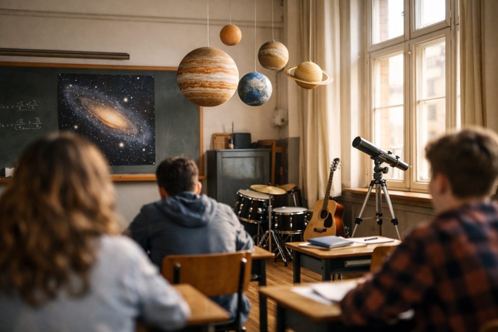Gymnázium Andromeda is a school like no other — floating among the stars, dedicated to education, music, sports and adventure.